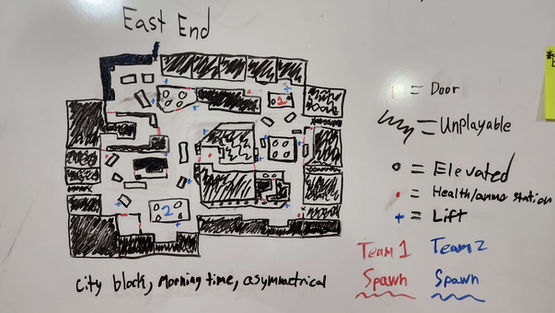 Tasked with creating a multiplayer map for a college project. The map evolved from the conception phased, to blocking out, art pass, and finished with the light pass. Playtests suggested the map had a good flow towards the center of the map.